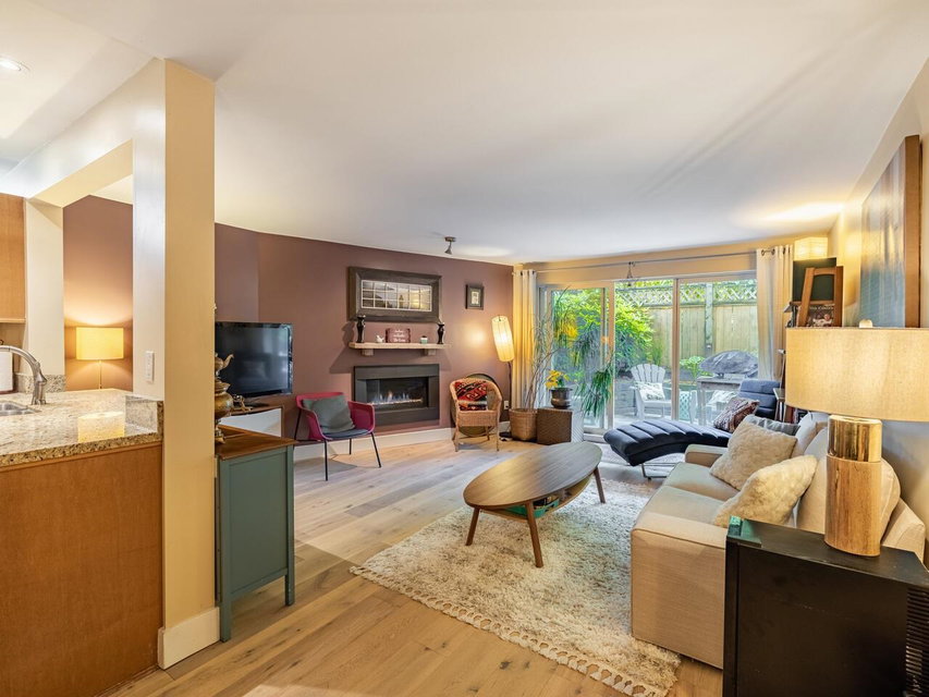 Location Location Location! Renovated 1 bed, 1 bath large ground floor corner unit in a quiet owner occupied building with a great sense of community. Hardwood flooring, gas fireplace, in-suite laundry, granite kitchen countertops, s/s appliances. Plenty space for a home office nook and dining area. Entertain as guests sit at your kitchen bar counter and adjourn to dinner on your own private landscaped patio oasis. Landscaped and a wonderful quiet sitting area to grill, garden and entertain. Walking distance to Marpole Park, public transportation, all the shopping amenities of South Granville and close by at Marine Gateway. Fantastic opportunity to own your first Vancouver home! 1 parking stall & 1 storage locker, pets welcome. Dont miss out on this gem!