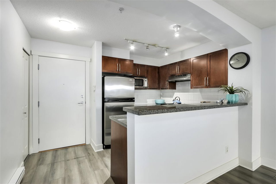 Welcome home to this rarely available 1 bedroom at Glenlloyd Park. Spacious open concept kitchen & living area extends to generous outdoor living space where you can enjoy the serene setting of this coveted UBC location. Kitchen features stainless steel appliances, polished granite counter tops, shaker style cabinets. Take the chill off with the cozy gas fireplace after a run in the nearby parks. Leave the car parked as you’re only steps to University Market Place & recreation options such as golf, parks & public transit just minutes away in the heart of UBC campus. This building has a proven track record with a proactive strata PLUS NO UBC levy! Lots of guest parking & multiple EV charging spots for your convenience. Parking & Storage included. Pets / Rentals welcome & move-in ready!