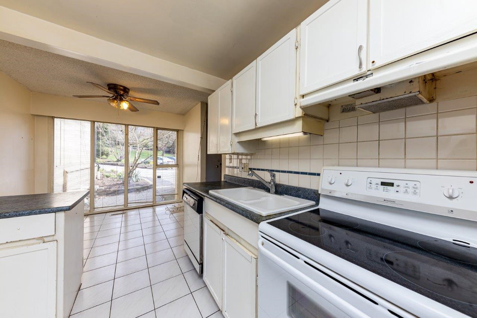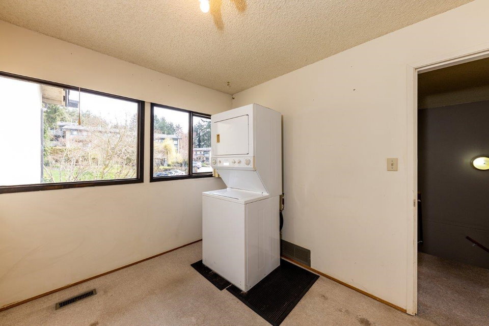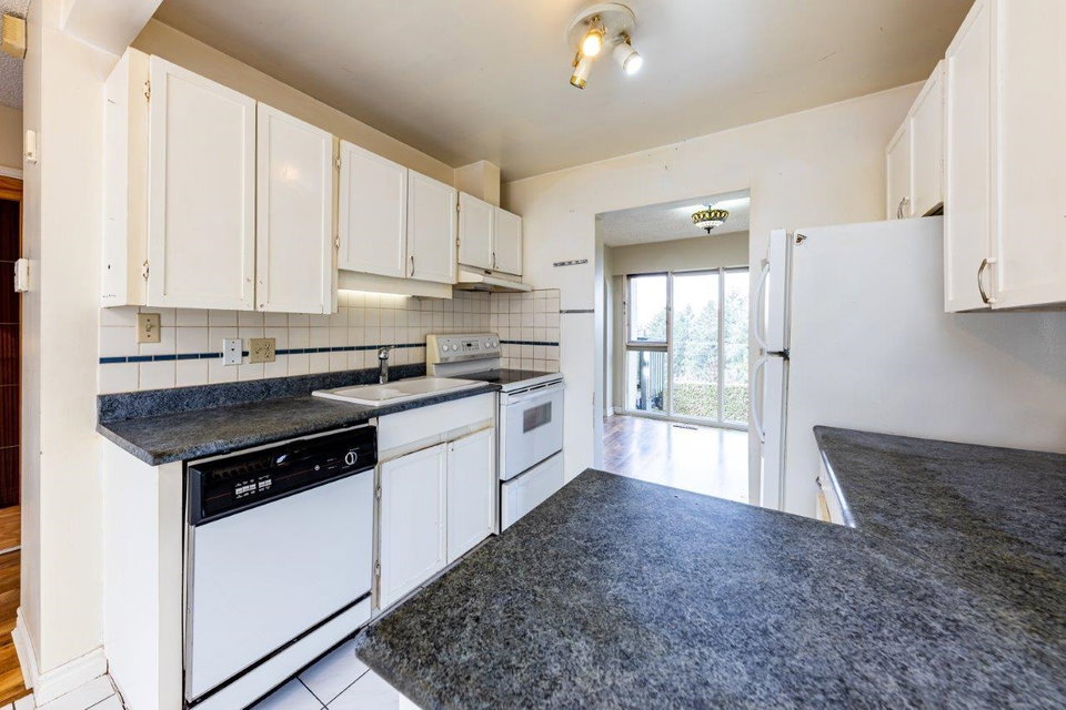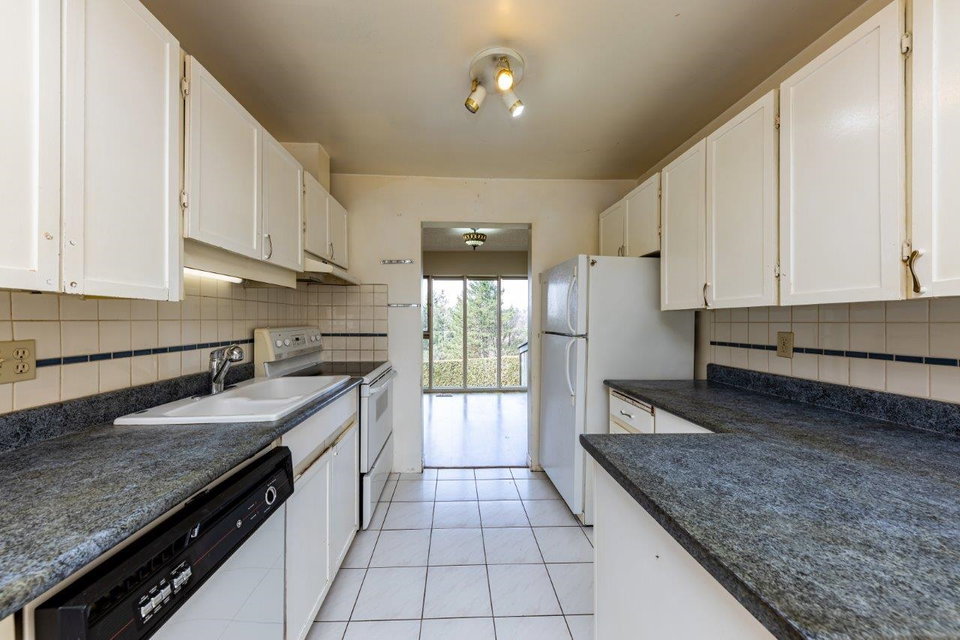In original condition this 3 bed/3 bathroom, 3 level townhome with 1900+S/F is a blank canvas & has great options for you to updated and make it home sweet home. Offering a traditional floor plan with bedrooms up, main floor living, & a rec room down with full bath & sliders opening to a private patio. S/W exposure, some city & water views, plenty of windows for natural light, covered carport at your door & perfectly located at the end of the CDS – next to the outdoor pool & visitor parking. Family friendly complex minutes from schools, North Wood & Parkgate Village, Superstore, numerous parks & trails & easy access to Hwy#1. View By Appointment.