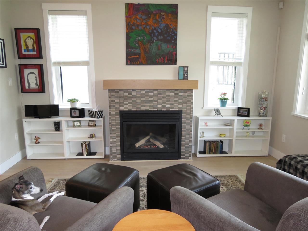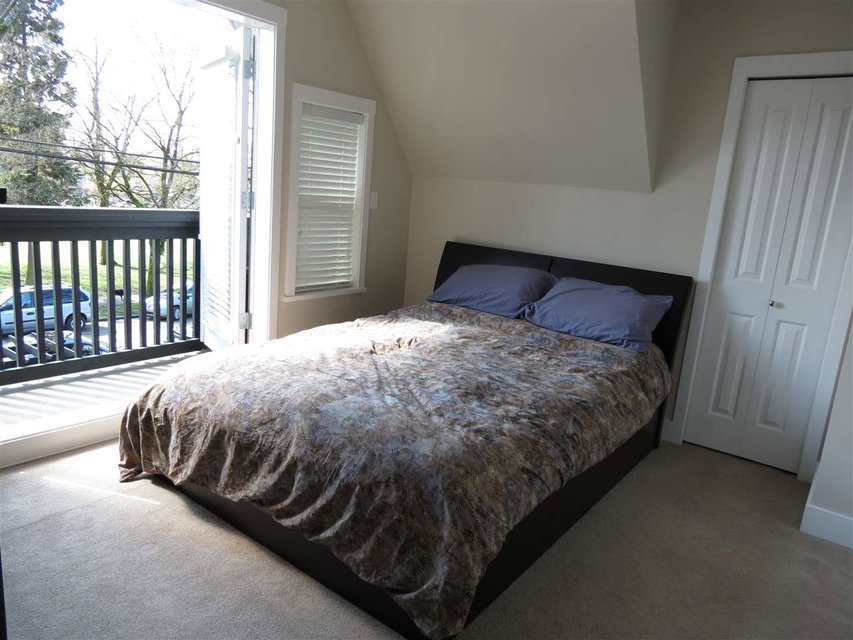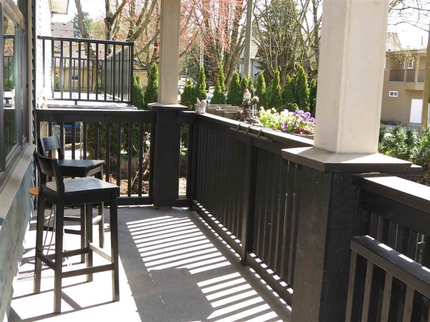 Front ½ duplex facing south onto Victoria Park with good outdoor space. The patio has n/gas hookup for your BBQ, a full width front porch and French doors open off the master bedroom to a balcony. By the front foyer is a coat closet and a private guest bathroom. The L/R, D/R and kitchen are a nice open plan with a gas F/PL in the L/R and good appliances in the kitchen. Upstairs are 3 B/Rs, 2 baths and the laundry. The bright bsmt level has a separate side door entrance and has a rec/room with wet bar, B/R and full bathroom, would be great for teenage kids, nannies or grannies. Other features include: HRV air exchange system, wood floors on the main, all 4 bathrooms have opening windows and the good size single garage has 4 built in speakers.