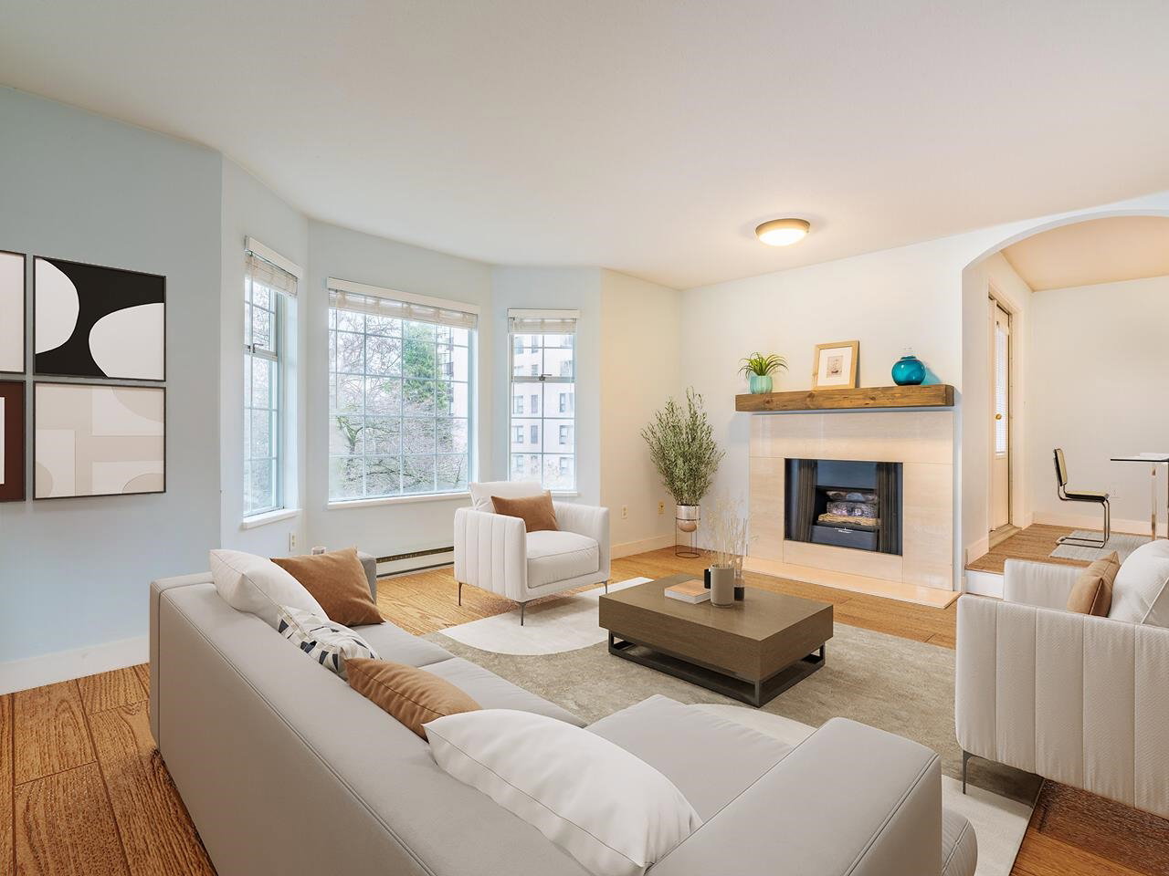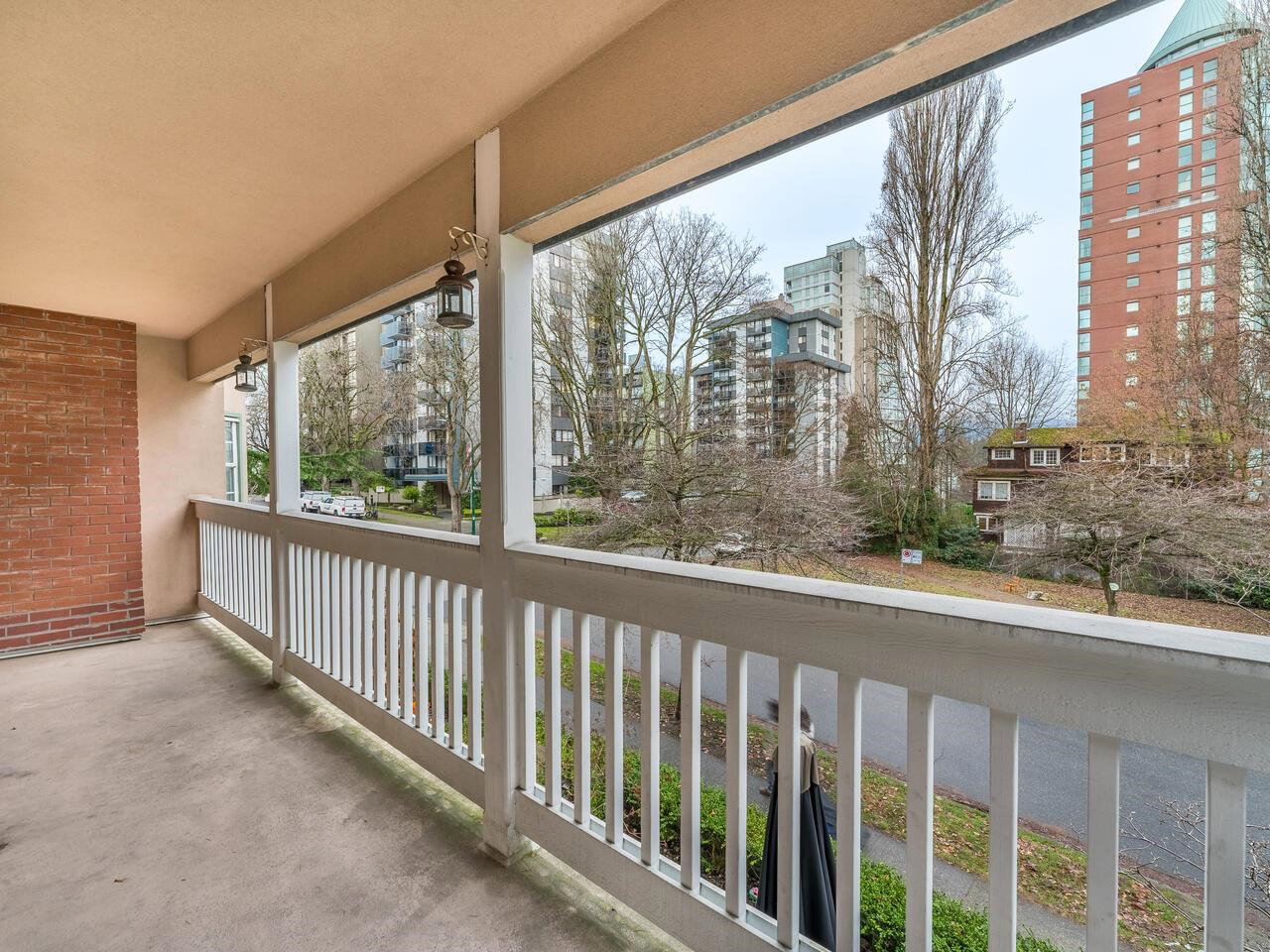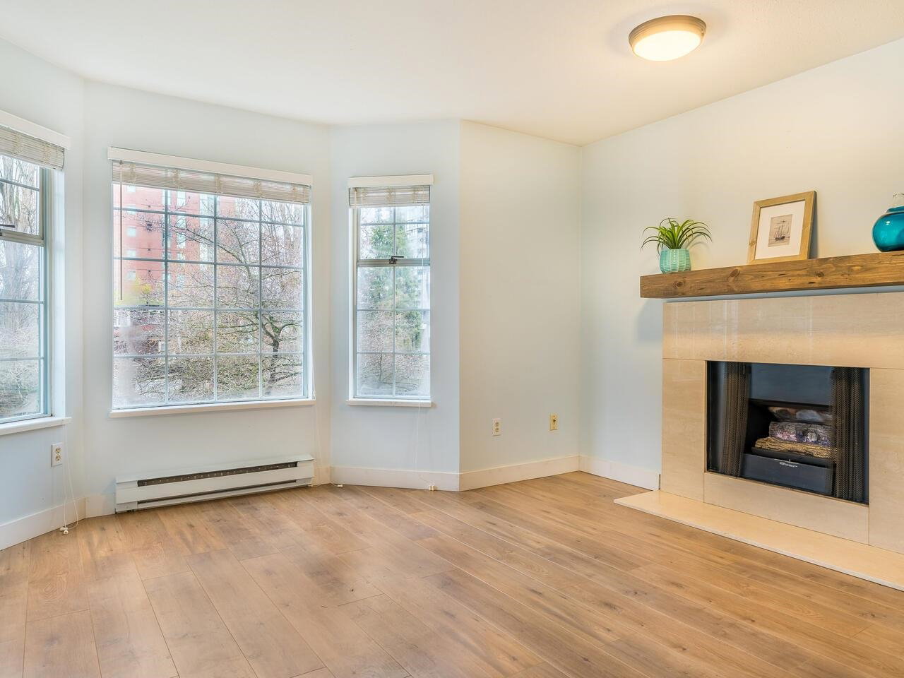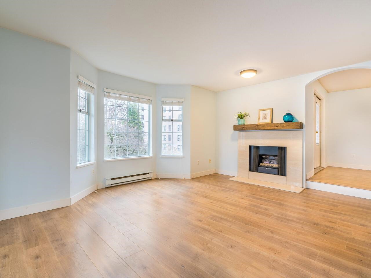 Welcome to Gilford Park, enjoy a coveted west of Denman address, this corner unit 2 bedroom 1.5 bath home offers large bright principal rooms. You will appreciate the 2 large covered balconies, providing plenty of space for container gardening, BBQ’s and more. House-sized dining suite? Large Sofa? King Size Bed? Not a problem here, check the floorplan, they don’t make them like this anymore. Cozy up to the fireplace after your walk on the seawall or tennis match at Stanley Park. Easy care laminate floors and in-suite laundry ticks all the boxes. Guilford Park is a proactive self-managed community. This unit offers 2 parking spaces and 1 locker. Book your appointment today and look forward to summer in the city close to shops, transit and all the convenience of Denman and Robson close by.
