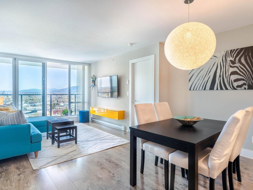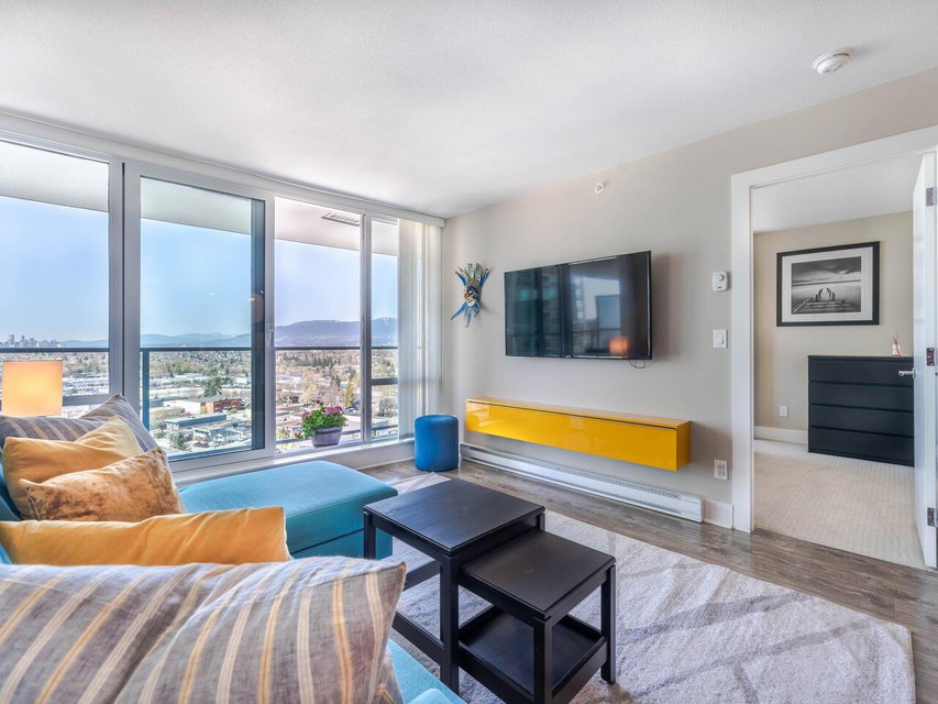 Fall in love with the forever views from your eagle eye perch in this stunning executive 2 bedroom home at Brentwood’s most coveted building, Aviara. From the gorgeous waterfall feature at the lobby entrance to the luxurious amenities, you will appreciate the quality finishings of this building. This coveted 03 plan on the 23rd floor features 2 bedrooms, 2 bathrooms, open plan living /dining with a wrap around balcony and sweeping 180 panorama west to the Vancouver Skyline and the majestic north shore mountains. 1 parking, 1 locker. The brand-new Gilmore Dog park is across the street, as well as short stroll to Whole Foods, Brentwood Mall and Skytrain Stations. Don’t wait, this one is special.