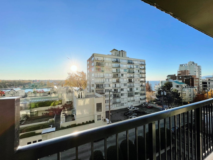 NEWLY RENOVATED! English Bay ocean views are right outside your window! Walk for minutes to Sunset Beach Park, the Seawall, or Stanley Park. The building recently had extensive restoration including the exterior, windows, balcony doors & paint, guardrail replacement, parkade, and balcony membrane resurfacing. The premises have an onsite caretaker, outdoor swimming pool, hot tub, sauna, and rooftop common deck with unobstructed ocean views. The maintenance fee includes property tax, heat, and hot water. The unit has a functional layout with two side-by-side bedrooms and an open living area with large windows that could lead you to the Burrard Inlet: you can watch the international firework festival from the living room! Unit is move-in ready. Virtual Tour: https://youtu.be/nKwNk1QzG50