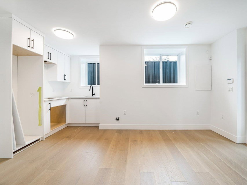 Welcome to this Brand new half side by side duplex in Trendy Main Street Area! This functional floor plan offers 4 bedrooms and 4 bathrooms. The open main level features 9′ high ceilings, wide plank Oak wood floors, built in shelves, a cozy gas fireplace, chef’s kitchen with Fisher & Paykel built-in appliances and Quartz countertops. Second level has 3 bedrooms and 2 baths. The basement floor has a one bedroom suite next to the attached single car garage. Some other features include A/C, smart doorbell, Security Cameras, built-in speakers and a private back yard that has a really nice raised patio with built-in BBQ and a Gazebo to enjoy throughout the year.