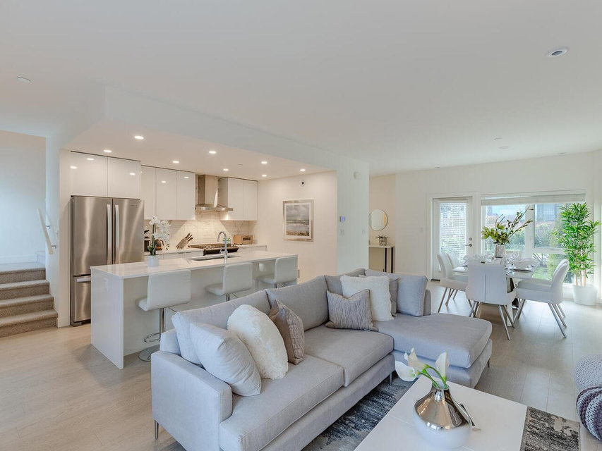 Welcome home to your mountain oasis at the North Shore’s exclusive planned community, Seymour Village. Enveloped in the woods, many trails lead to the shops of Parkgate Village, 2 major golf courses and the beach parks of Deep Cove and Cates Park. Enjoy instant access to world famous hiking, biking and skiing of the North Shore by just stepping outdoors. Easy access to Hwy 1, be in Whistler in 90 mins or Downtown Vancouver in 20 min. Alternate shopping at Northwoods Village or Dollarton mall just 5 mins either direction. Transit options are close by. This contemporary 3 bdrm 3 bth townhome features spacious living spaces and 9ft ceilings. Wake up to the gorgeous mountain views as the floor to ceiling windows invite the outside in. The sleek modern kitchen features stainless steel appliances, a huge island and soft close white cupboards. Generous patios and deck space are perfect for year-round enjoyment. Side by side private double car garage, with room for your toys and direct access to your home.