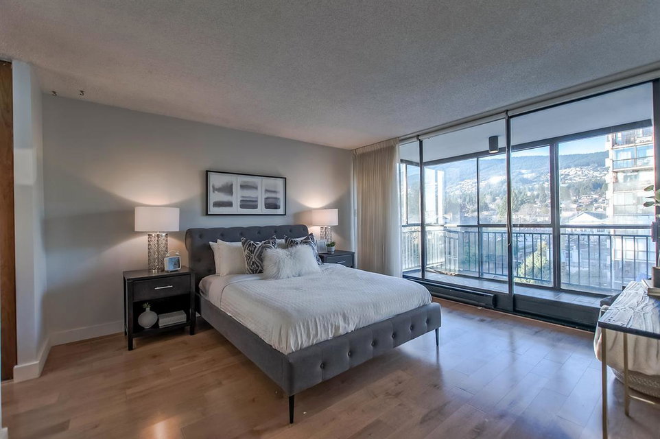 Have you been longing for 180 degree views from Lion’s Gate to Vancouver Island? Look no further! Only 2 suites per floor, this unit runs the length of the West Side of the building offering Panoramic Ocean Views from the living areas and iconic Mountain Views from the bedrooms. There is even a west ocean view from the kitchen sink! The linear layout provides potential for a magnificent open plan renovation. Tasteful updates to the Bathrooms and Kitchen makes this move in ready so you can enjoy all this Central Ambleside location has to offer. 2 underground parking spots plus room for a motor bike or other bikes at the front of the stall. 1 locker included. Amenities include a meeting room. Sorry Rentals and Pets are NOT permitted. Well managed building with many long time owners. Call today for your private viewin. OPEN HOUSE Sunday January 14th 2-4 pm, 2018!!