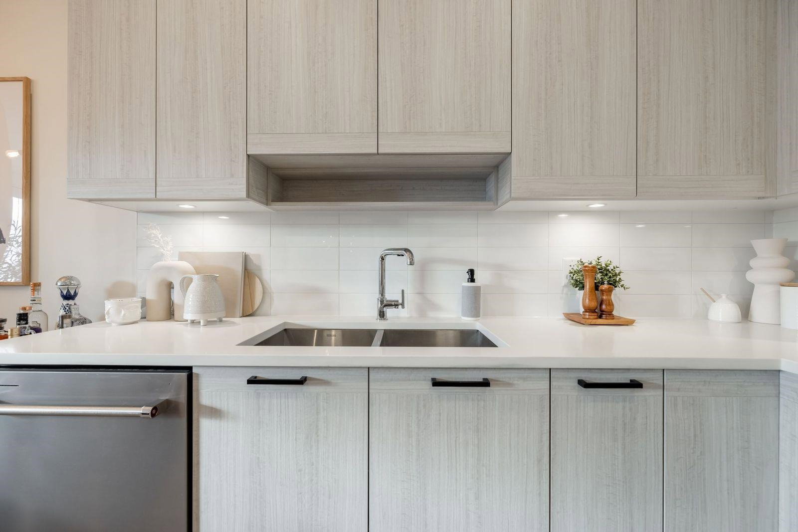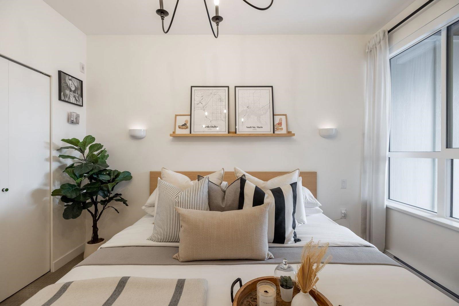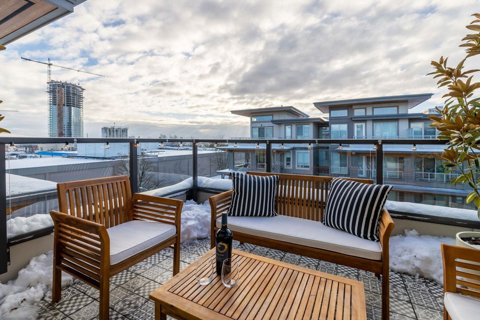 Welcome Home! This BREATHTAKING 1 bedroom & Den TOP FLOOR condo in newly built Cedar Creek will leave you smiling from ear to ear! Developed by Ledingham Mcallister & is centrally located in the Edmonds neighbourhood of South Burnaby. This unit has NO GST & is loaded with upgrades. Step inside to this bright West facing open layout with tall ceilings. Custom built in den storage & desk makes a great home office. Built in closets, upgraded lighting & custom feature wall in living room. Beautiful white quartz countertops in kitchen with warm tones & stainless steel appliance package. Room for your bar stools at island. Great for entertaining. Sliding door leads to spacious West facing deck to enjoy the afternoon sunsets with no one above you! Footsteps to skytrain & more. 10 out of 10!