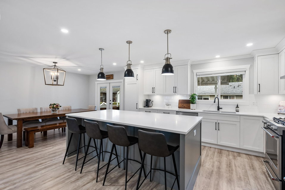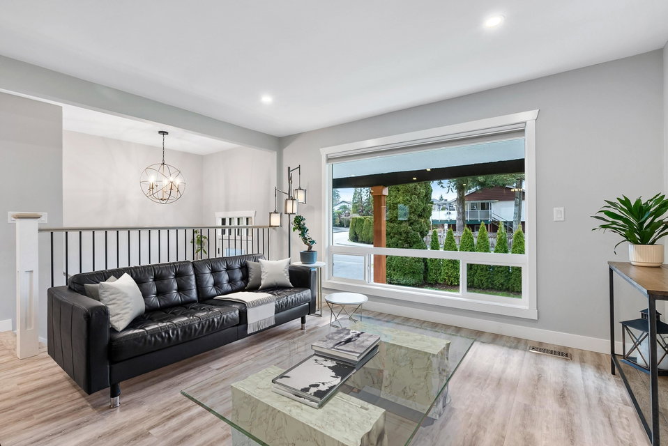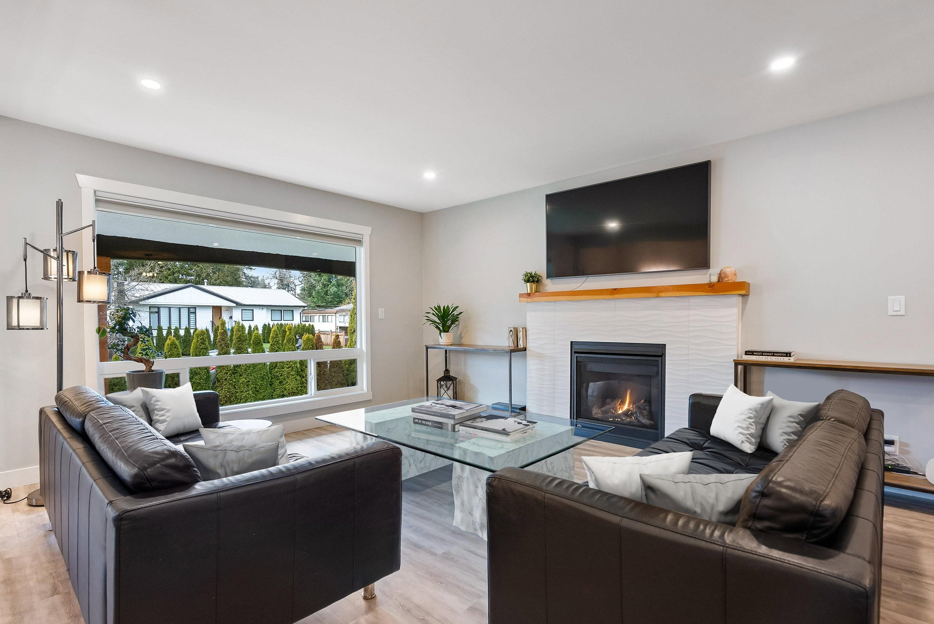 Welcome to this beautifully renovated Central Coquitlam home w suite & AC! This split level home boasts 2,314 sqft on a sprawling flat 8,100 sqft lot. Step inside to open concept living & extensive 2020 renos. Feat incl: AC, kitchen w oversized island, ceasarstone countertops, gas range, s/s appliances, built-in wine fridge, bright living room w cozy gas fireplace & large window allowing plenty of natural light, spacious dining room leading out to the balcony perfect for indoor/outdoor living, new flooring & lighting, 3 generous beds & 2 baths upstairs, private lower level media room also perfect for an office, laundry room, completely separate 3 bed/1 bath suite, & expansive yard w RV parking! Prime location near great schools, Mundy Park, Como Lake Village, Rec Centre, transit & more!