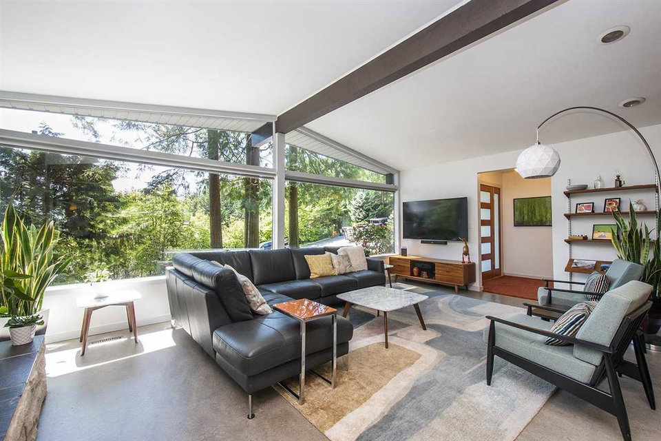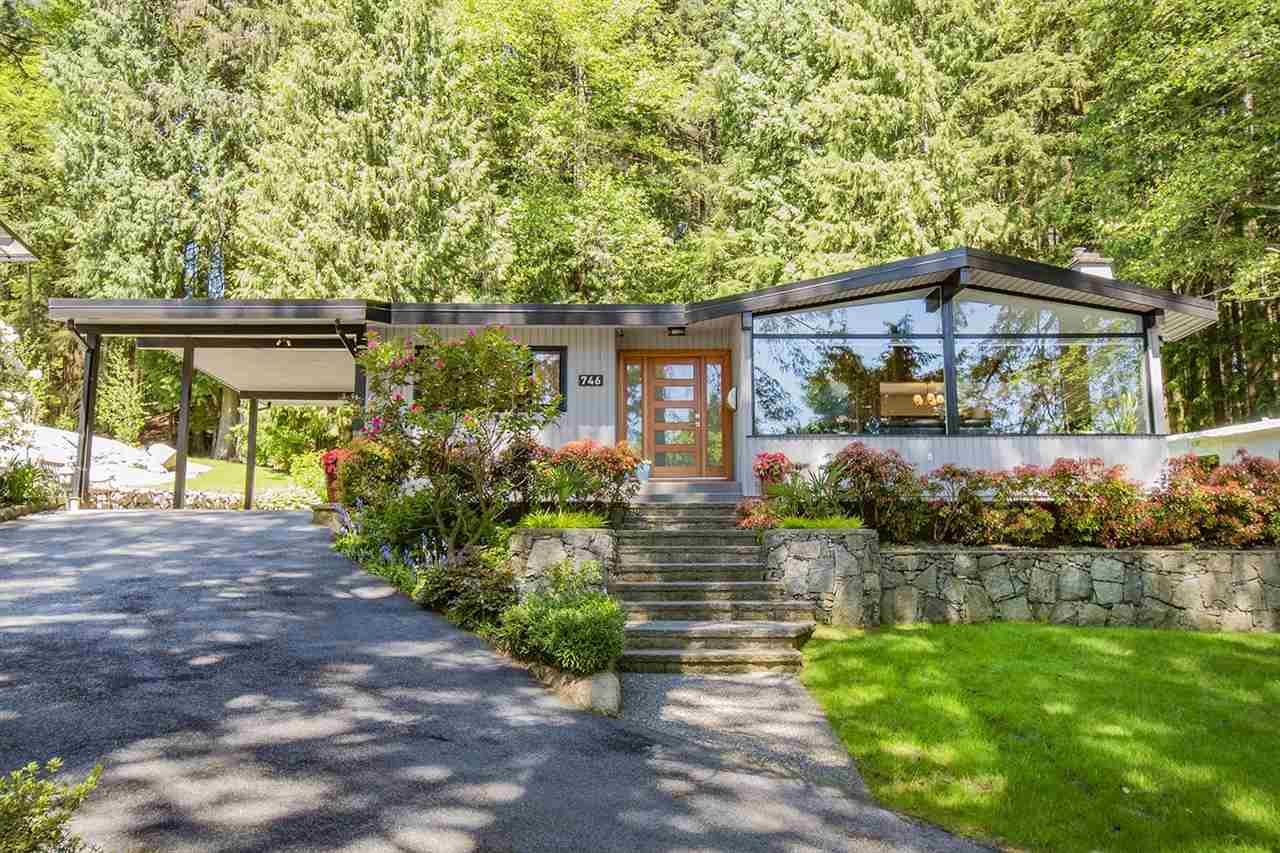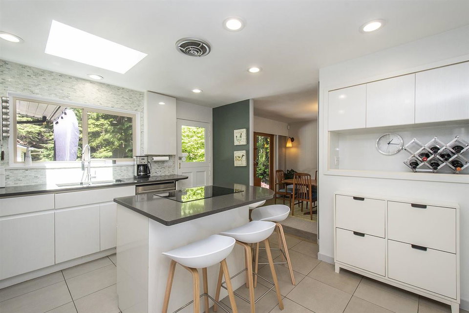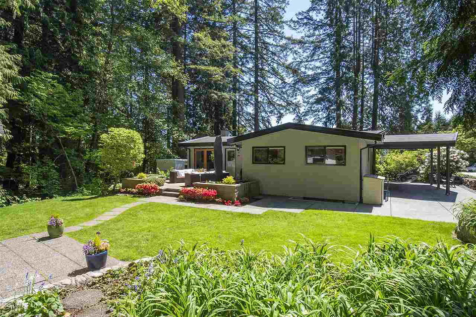 Gorgeous circa 1963 Post & Beam on a maturely landscaped, private, flat lot bordered by parkland on two sides. This classic home has been tastefully updated top to bottom with 3 bedrooms and 3 bathrooms. The main floor features large living spaces with high vaulted ceilings and floor-to-ceiling windows with French doors that transition nicely to the large, stamped concrete patio. The kitchen is bright with tasteful finishes and overlooks the backyard. The primary bedroom features a beautiful ensuite with soaker tub and quartz backed shower. Lower level features a massive rec room, mud room with a custom dog shower(!), workshop, and ample storage for your North Shore gear! Plenty of parking, and a no through street surrounded by nature in coveted Carisbrooke school catchment, just move in and enjoy your West Coast lifestyle!