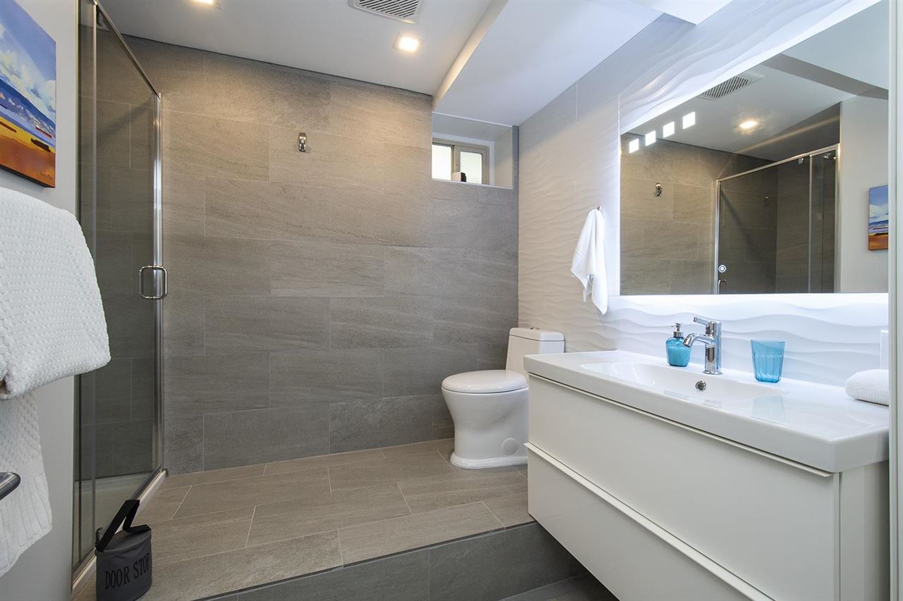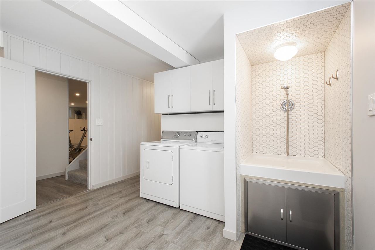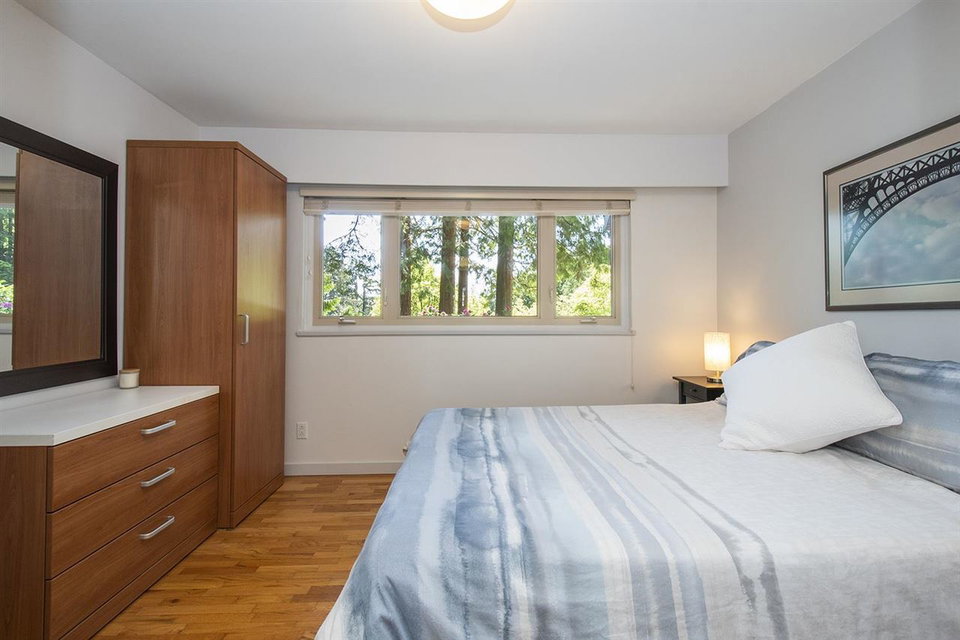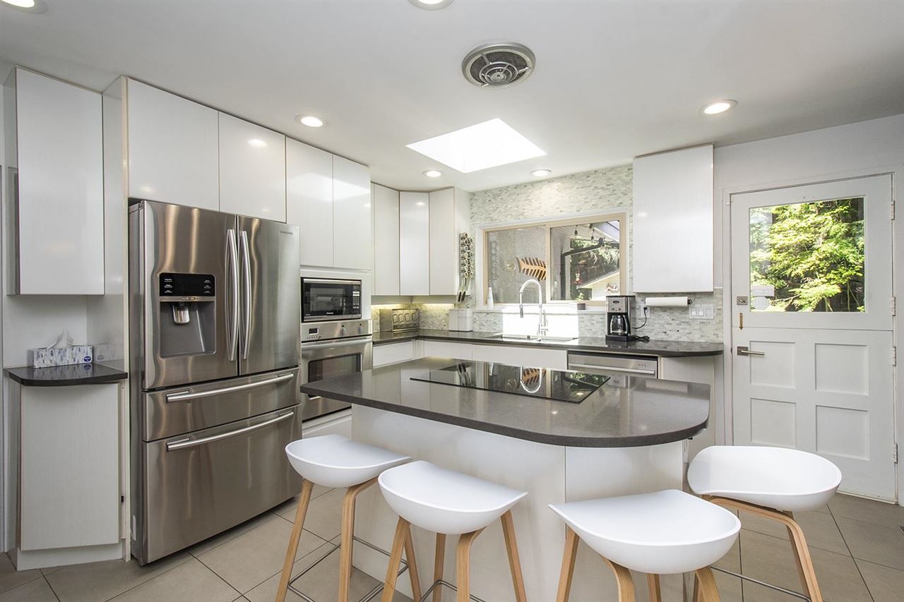 Gorgeous circa 1963 Post & Beam on a maturely landscaped, private, flat lot bordered by parkland on two sides. This classic home has been tastefully updated top to bottom with 3 bedrooms and 3 bathrooms. The main floor features large living spaces with high vaulted ceilings and floor-to-ceiling windows with French doors that transition nicely to the large, stamped concrete patio. The kitchen is bright with tasteful finishes and overlooks the backyard. The primary bedroom features a beautiful ensuite with soaker tub and quartz backed shower. Lower level features a massive rec room, mud room with a custom dog shower(!), workshop, and ample storage for your North Shore gear! Plenty of parking, and a no through street surrounded by nature in coveted Carisbrooke school catchment, just move in and enjoy your West Coast lifestyle!